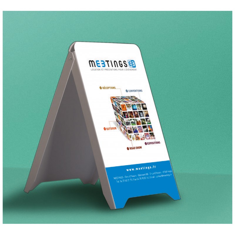 Chevalet en pvc blanc, très léger qui vous assurera l’essentiel d’une communication recto / verso !